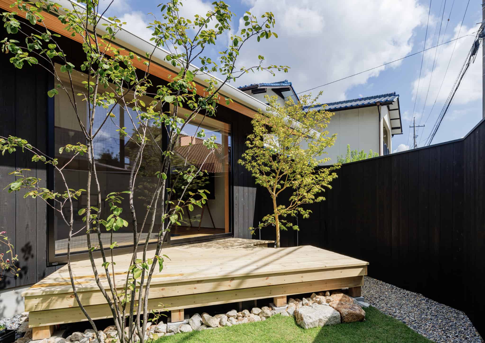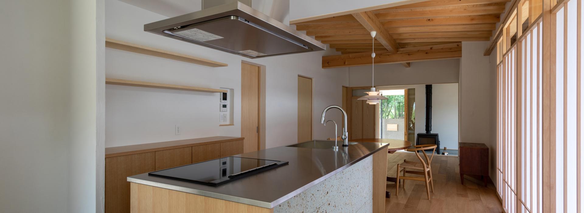 お客様の日当たりのよい広いリビングをという要望で広さもあり庭を活かした開放感のあるプランをご提案。店舗兼住宅とのことでご家族のスペース、店舗のスペースを互いに気兼ねなく過ごせる住宅を設計しました。生活感を隠しつつキッチンを中心に家事同線を確保しています。